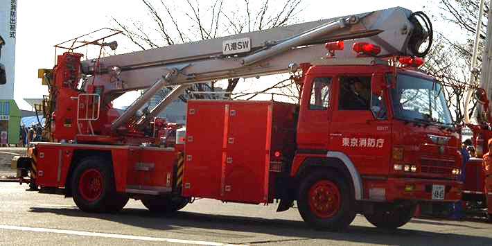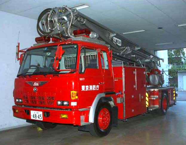 救援車<ターミネーター付き>は、以前はボーリング放水塔車だった八潮SWに、 大型のインパルス銃(圧縮空気を利用して水を微粒子状にして放出し、少量の水で 効率よく火災を消すというもの)が取り付けられたものです。
