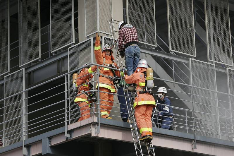 ☆三連梯子により救助中