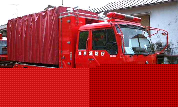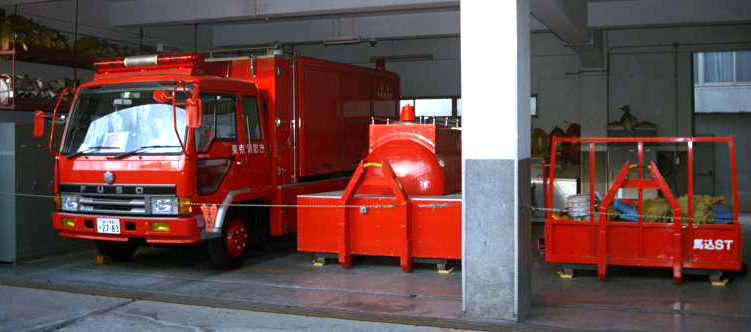 車両に積まれているのが大型コンテナです。中央が油脂火災用の泡原液の入った